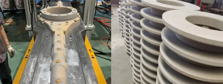 Принцип песка и естественный гравитационный эффект песка смолы; Плесень оснащена быстрым и гладким методом выхлопных газов с трех сторон одновременно. Процесс изготовления ядра может заполнить полость формы в кратчайшие сроки. Песочное ядро плотное, полное и гладкое, а выход ядра высока.