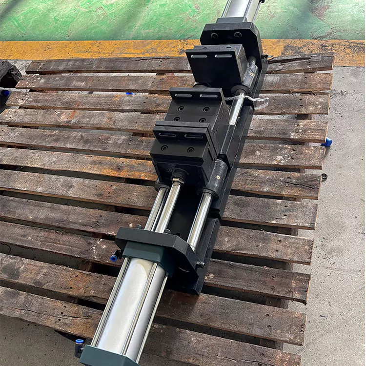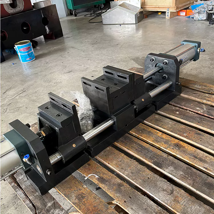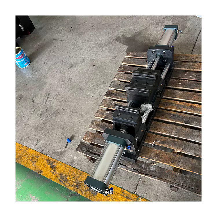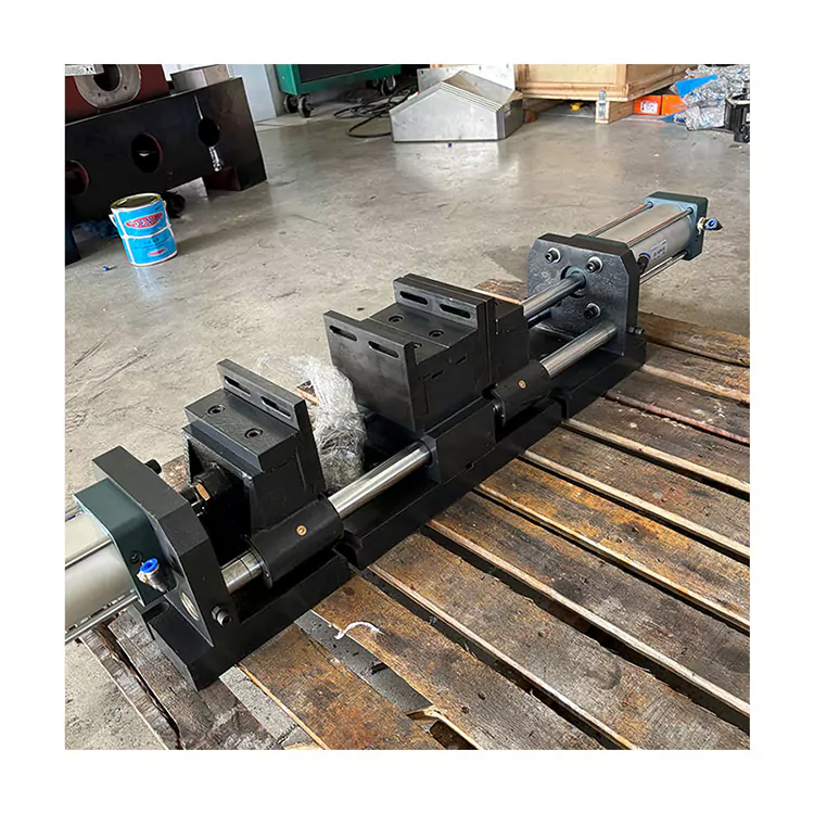 Электромагнитный клапан управляет этим воздушным цилиндром, регулирует гайку винтового стержня для контроля открытого размера тисков и обеспечивает затягивание и ослабление заготовки.